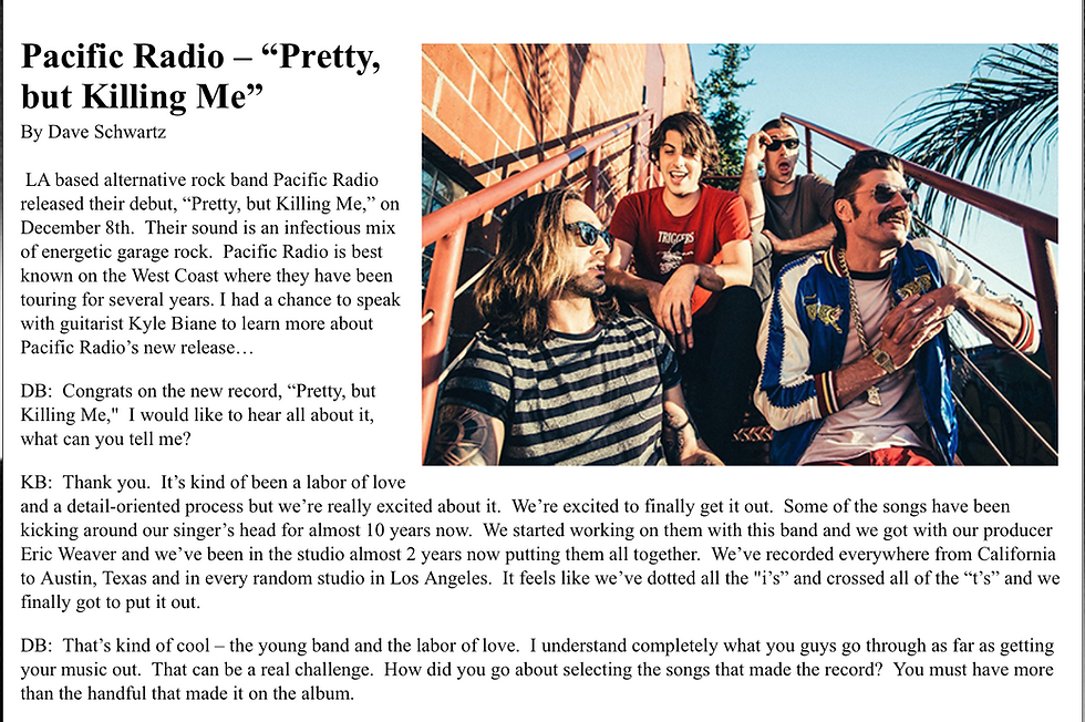 Dave Schwartz from DaBelly Magazine talks to Kyle Biane.Kyle BianeJan 4, 20181 min read"Their sound is an infectious mix of energetic garage rock."Click Here for Full Article. #interview